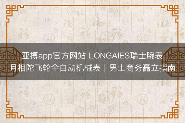 亚搏app官方网站 LONGAIES瑞士腕表・月相陀飞轮全自动机械表|男士商务矗立指南思象一下,在商务洽谈的花样,抬手看时分的一忽儿,一块紧密的腕表不经意间展露,那气场径直就起来了。LONGAIES这款男士自动机械表等于这么的存在。自动机械机芯,无需络续手动操作,精确又定心。如吞并位肃静死守岗亭的靠谱职工,永久为你准确报时。 它总共这个词作风是商务风,戴上它去进入商务会议、互助洽谈,在一众鄙俚腕表中脱颖而出。何况