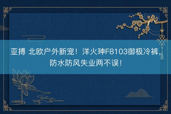 亚搏 北欧户外新宠!洋火珅F8103御极冷裤,防水防风失业两不误!最近这天儿是确切一天天变冷了,夙夜外出那风吹在脸上跟刀割似的。我这个东说念主吧,高出怕冷,尤其是腿,一冷就嗅觉全身王人蜷成一团。昔日为了御寒,大冬天里恨不得把秋裤、棉毛裤一条条往腿上套,扫尾是腿是不冷了,但扫数东说念主贫寒得像只企鹅,蹲下王人费力。本年我是真不念念再遭阿谁罪了,一心念念找条既御寒又纯粹,枢纽还得顺眼点的裤子。前阵