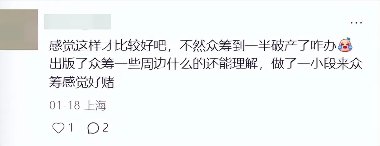 毕竟,即使关于迷惑资本较低的孤独文游来说,1000元齐全是杯水舆薪,险些措置不了什么燃眉之急。是以,这个众筹是何意味?