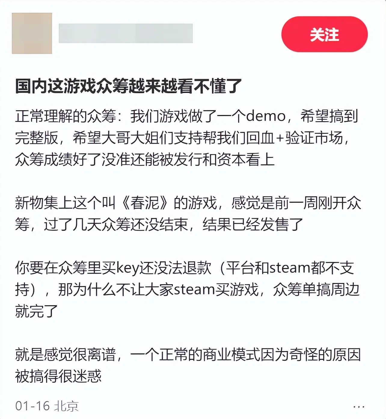 众筹不是给没作念完的游戏筹钱复古的吗?怎样你齐发售了还要来分一杯羹呢?