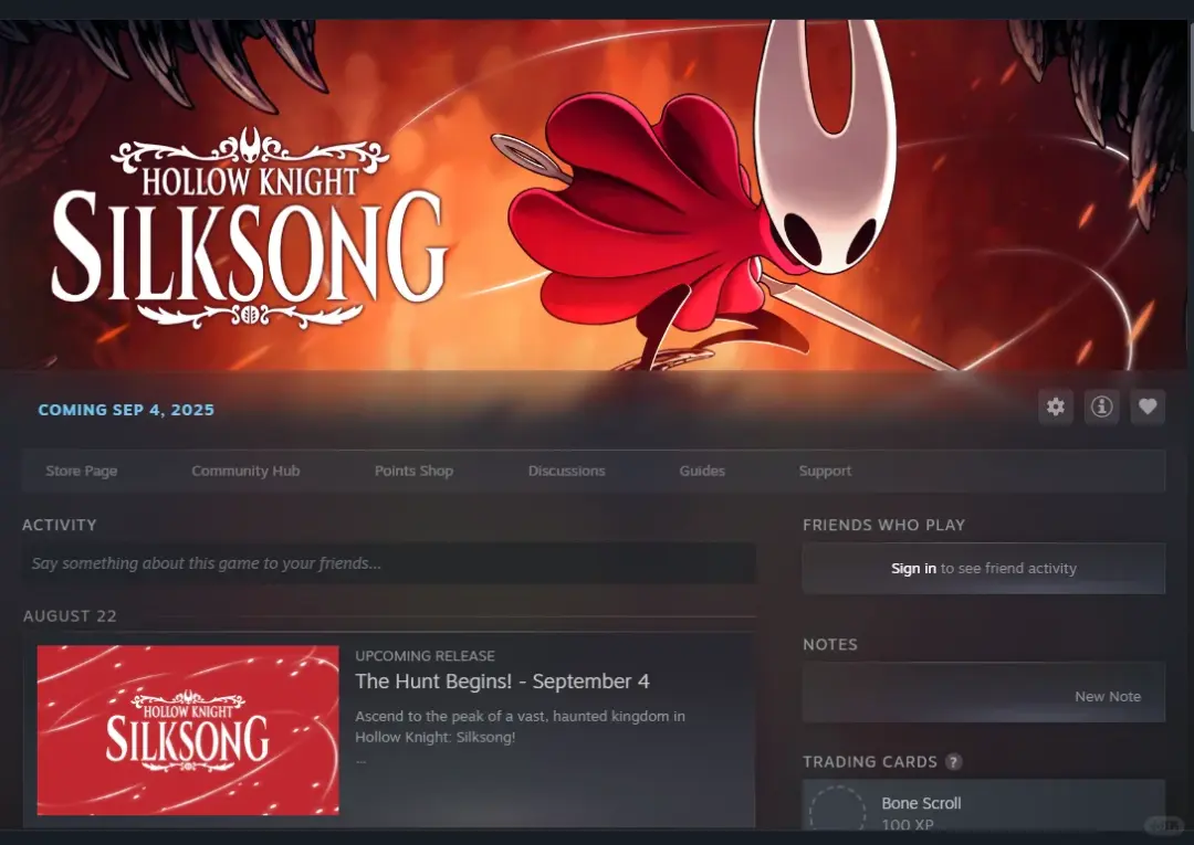 Team Cherry给《缺乏骑士》的众筹用户也发了《丝之歌》兑换码