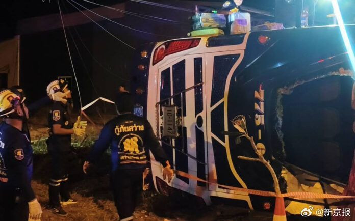 泰国《即时新闻》本日报谈,泰国董里府警方接到报案说,亚搏app官方网站一辆从普吉岛开往也拉府勿洞县的双层巴士本日在该府一条公路上发生侧翻事故。这辆巴士14日22时足下从普吉岛起程,原霸术15日中午抵达勿洞县。车上共有52东谈主。