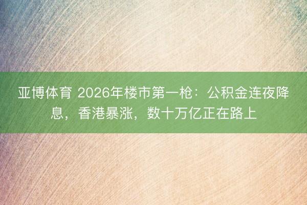 亚博体育 2026年楼市第一枪:公积金连夜降息,香港暴涨,数十万亿正在路上才参加2026年,楼市就醒来了三个好音书, ①公积金利率下调了; ②香港楼市出现暴涨; ③城市更新的大笔资金也驱动落地。 三个事连在一块来看,信号越来越明确了:2026年的楼市风向,果然变了! 有的东说念主还在惦记商场连续下落,依旧看守着抓币不雅望的作风。但不少东说念主驱动或许错过这波红利,依然驱动暗暗进场了。 对于这三个利好和