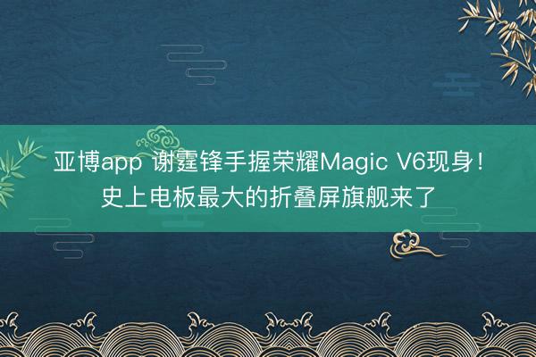 亚博app 谢霆锋手握荣耀Magic V6现身!史上电板最大的折叠屏旗舰来了快科技2月15日音信,日前,多位博主晒出谢霆锋现身片场的相片,画面中,他手握一款折叠屏新机亮相,机身极端纤薄,激发网友热议。 据博主\"旺仔百事通\"走漏,该机恰是行将发布的Magic V6折叠屏旗舰,谢霆锋这次现身或正在为新机拍摄宣传片。 值得一提的是,谢霆锋曾担任荣耀往日科技体验官,并在荣耀Magic8系列发布会上亮相。 据
