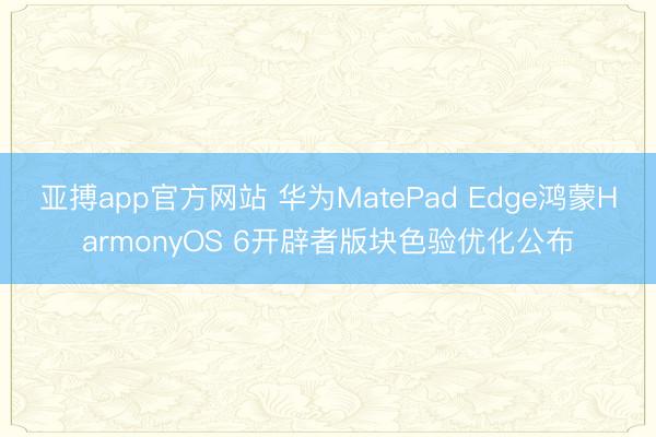 亚搏app官方网站 华为MatePad Edge鸿蒙HarmonyOS 6开辟者版块色验优化公布{jz:field.toptypename/} IT之家 2 月 15 日音信,本月早些期间开启了 HarmonyOS 6(基于 API 23)开辟者版块 Beta 招募,该版块已不绝推送。据先容,新版块将带来更高效、更流通、更苟简、更安全的全场景智能体验。 IT之家闪耀到,华为官方团队账号 @贤慧办公家具司理 公布了 HUAW