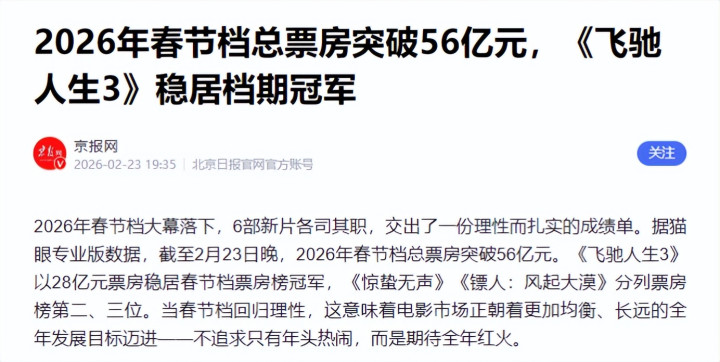 2026春节档《驰骋东说念主生3》《镖东说念主》《惊蛰无声》多点着花。