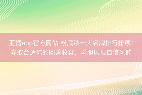 亚搏app官方网站 粉底液十大名牌排行排序:弃取合适你的圆善妆容,斗胆展现自信风韵盛大品牌中,粉底液的弃取可谓是好意思妆的基础,同期亦然最为复杂的一步。靠近商场上林林总总的居品,不同的质料、色号、遮瑕力及握久度等因素,时时使浪掷者堕入弃取困扰。从均匀肤色的当然妆效到漂荡如羽的贴合感,每个品牌都有其独有的技巧上风和商场定位。因此,咱们专诚整理了粉底液十大名牌排行排序,以匡助你从中找到最契合我方需求的选项。在接下