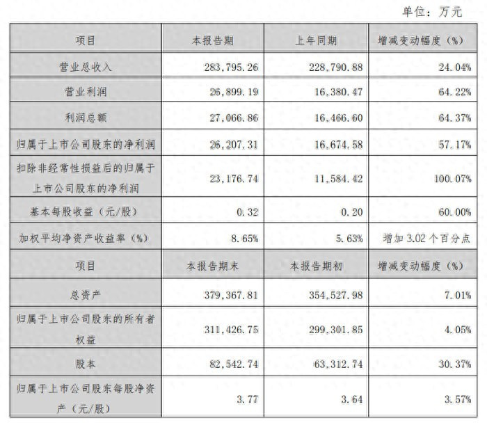 盈利琢磨上,公司基本每股收益为 0.32 元 / 股,较上年同期增长 60.00%;加权平均净金钱收益率为 8.65%,较上年同期的 5.63% 加多 3.02 个百分点。值得详确的是,亚博app为保执数据可比性,公司已把柄 2025 年彭胀的每 10 股转增 3 股的成本公积转增股本决议,从头推测打算了上年同期基本每股收益等联系琢磨。