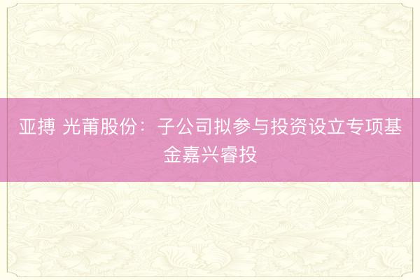 亚搏 光莆股份:子公司拟参与投资设立专项基金嘉兴睿投{jz:field.toptypename/} 2月13日,光莆股份(300632.SZ)发布公告,公司全资子公司厦门光莆投资有限公司(以下简称“光莆投资”)拟参与投资硬核坚果(北京)私募基金惩处有限包袱公司(以下简称“硬核坚果”)发起设立的嘉兴坚抓睿投股权投资结伙企业(有限结伙)(以下简称“嘉兴睿投”或“基金”)。 基金本次总