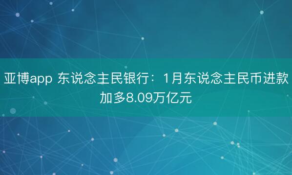 亚博app 东说念主民银行:1月东说念主民币进款加多8.09万亿元北京商报讯(记者 廖蒙)2月13日,东说念主民银行发布2026年1月金融统计数据讲解。数据知道,杀青1月末,本外币进款余额344.46万亿元,同比增长10.1%。月末东说念主民币进款余额336.77万亿元,同比增长9.9%。 1月份东说念主民币进款加多8.09万亿元。其中,居民进款加多2.13万亿元,非金融企业进款加多2.61万
