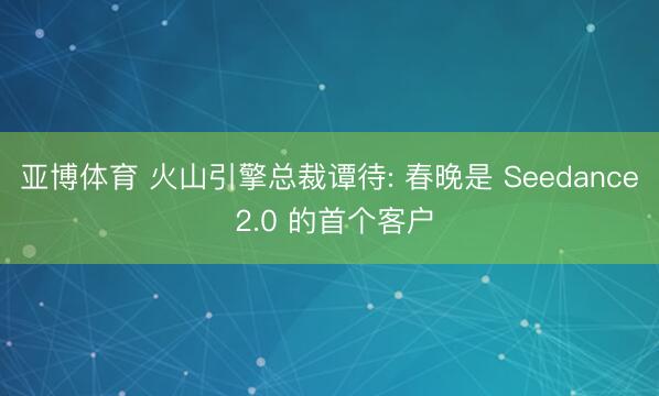 亚博体育 火山引擎总裁谭待: 春晚是 Seedance 2.0 的首个客户IT之家2月15日音尘,据央视财经本日报谈,火山引擎是字节进步面向企业的云与AI处事平台,亦然本年总台春晚独家AI云相助伙伴。 据火山引擎总裁谭待先容,在Seedance2.0模子矜重推出之前,就仍是深度参与多个春晚节倡导视觉制作体式,是以春晚亦然这款模子的第一个客户。春晚一直在探索,奈何把科技和东方传统文化好意思学肃清起来,而