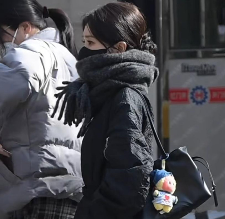 秦岚寂寥黑包裹得严严密实,领巾把脸皆给挡住了,烟熏妆搭配这寂寥,好酷!包包上的星星东谈主又可可人爱的。